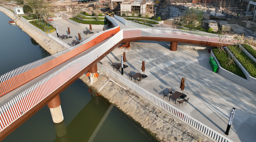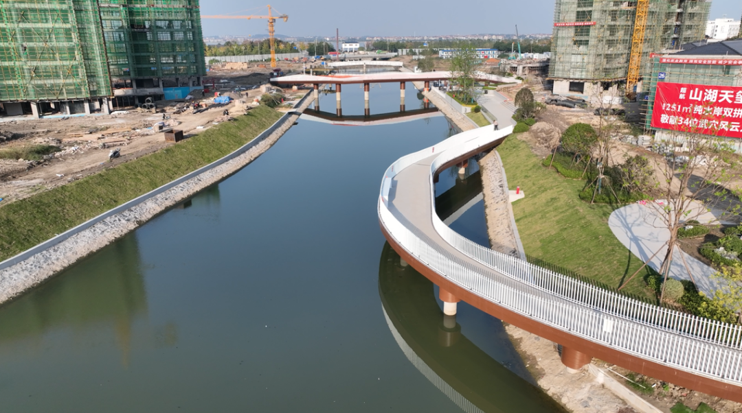 堤岸绿化、植被种植推进中,亲水设施建设中