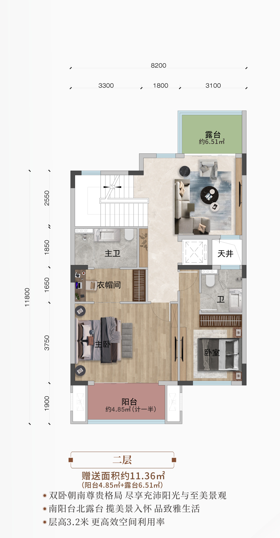 户型亮点:8.2米开间,总赠送面积约214-305㎡