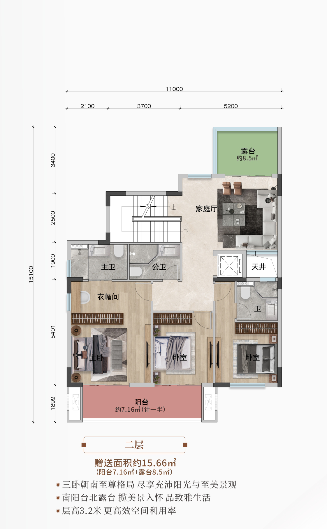 ✅二楼15.66㎡+三楼28.79㎡露台全赠送(合计44.5㎡)