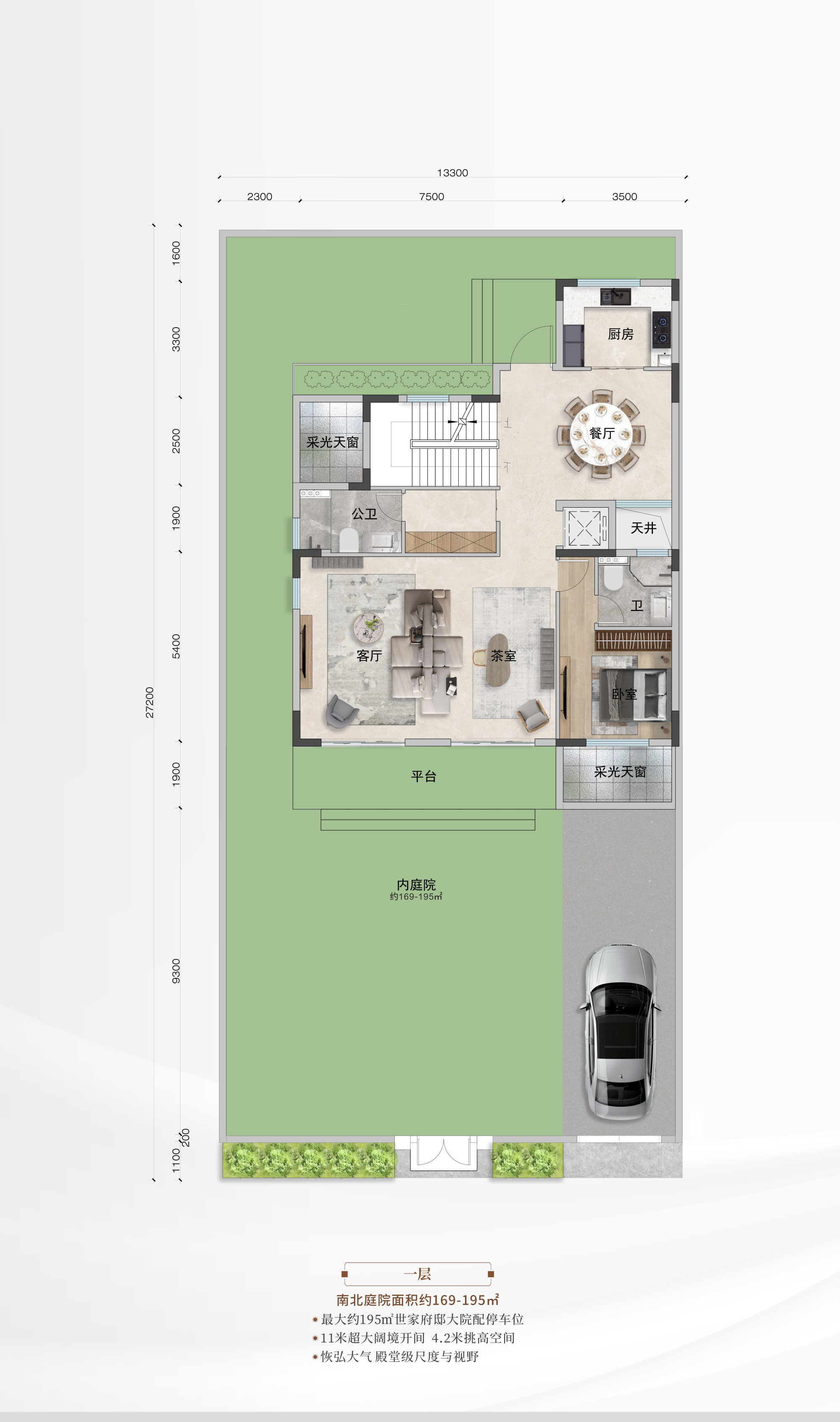 ✅一楼4.2米挑高,雍容大气,带前后庭院、超大院子169-195㎡全赠送,院内专属车位,尽享私密;