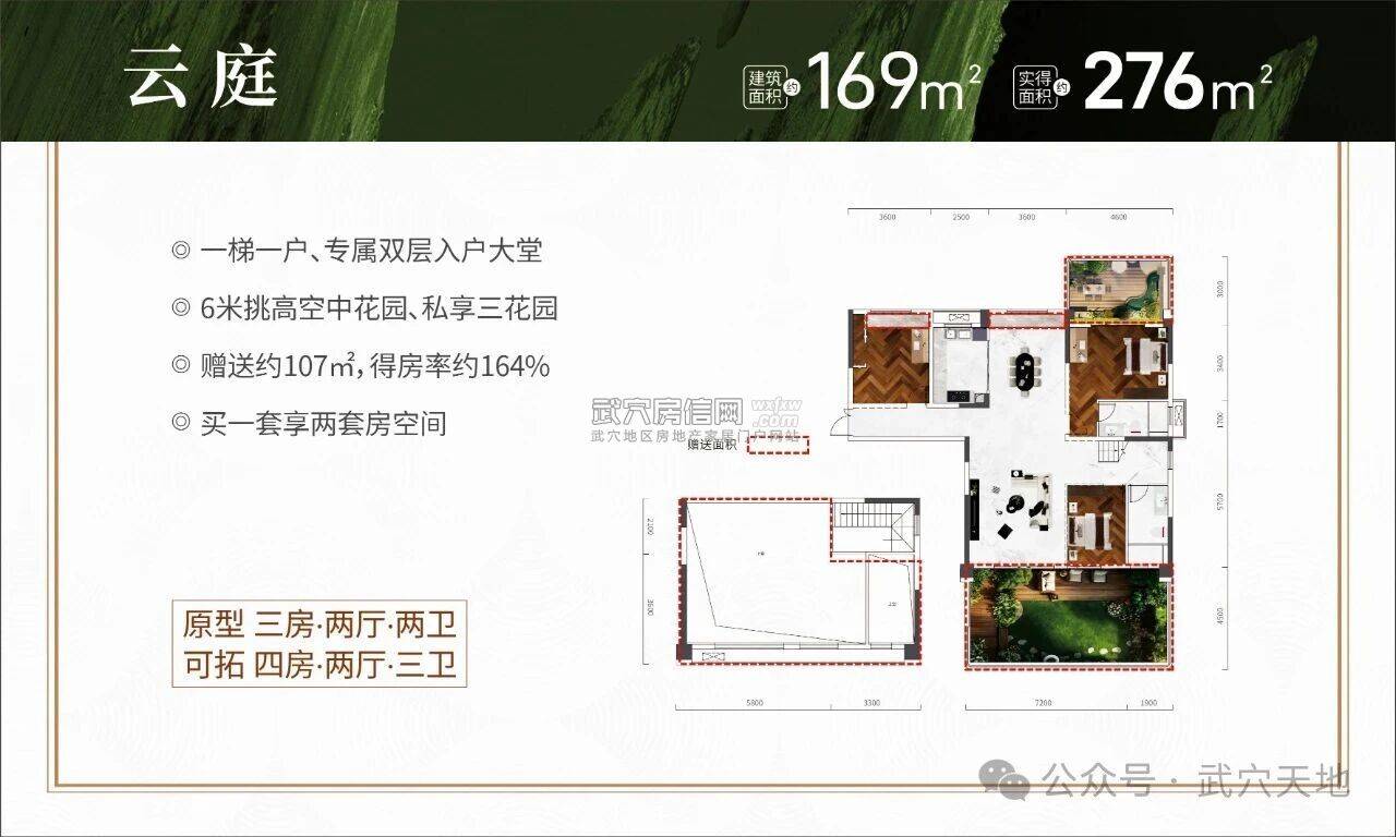 在武穴这座充满活力的城市中芯,关于“家”的想象,正被一个颠覆性的产品所重塑。当传统住宅还在为公摊面积精打细算时,武穴天地2#楼的169㎡户型,却上演了一场关于空间的“魔术”——实得面积高达276㎡,赠送约107㎡,得房率约164%。这不仅仅是一个数字游戏,更是一场关乎生活价值、居住哲学与未来人居形态的深刻革命。