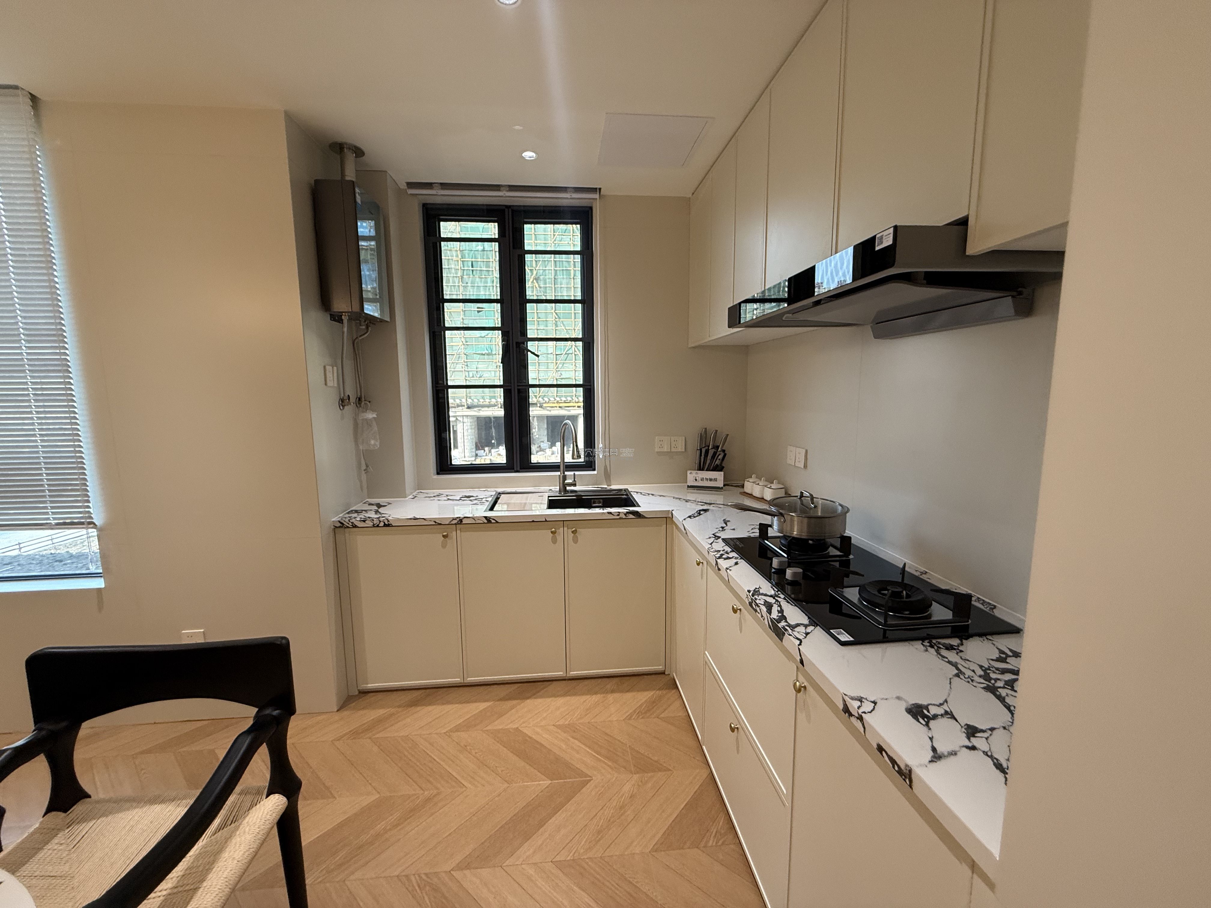 厨房采用分区设计,中西厨功能明晰,与餐厅自然相连,形成流畅的餐厨一体空间。三面操作台布局兼顾动线与采光,备餐过程从容有序。在这里,烹饪可与交谈同步,美食与生活相融,成为家中另一处温暖明亮的互动角落。
