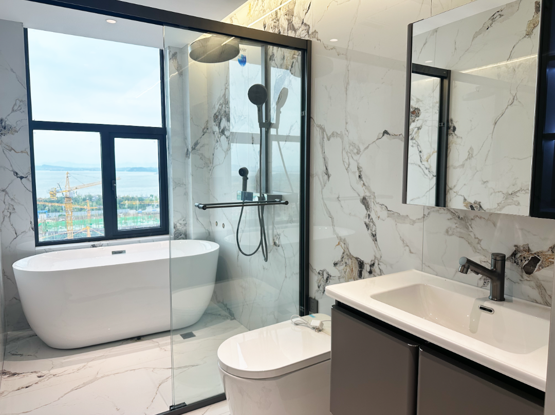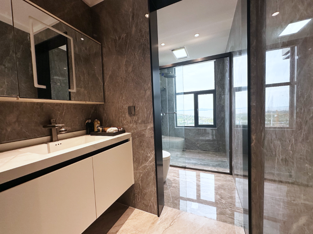 建筑外立面采用超扁平设计 + 晶彩石材质,搭配大面积玻璃,不仅最da化拓宽了观景视角,更消融了建筑与自然的边界,让武山湖的每一帧景色都成为室内流动的画卷,实现IMAX级别的环幕视野。