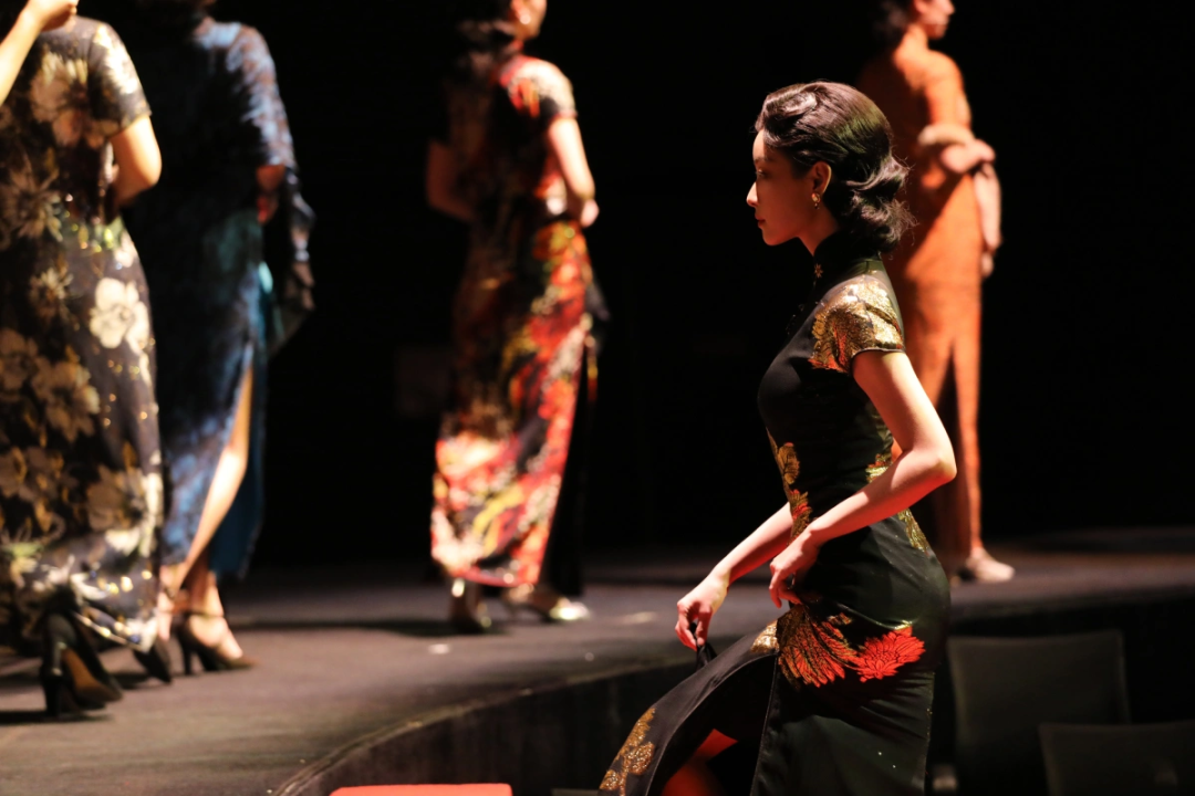 身着旗袍的佳人缓缓走来,尽显东方韵味,与夜景相得益彰;