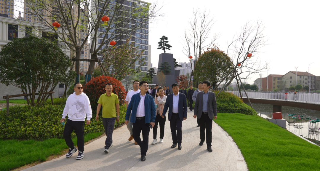 考察团一行首先实地走访东港、幸福港千米滨水景观带,近距离欣赏水岸生态风光,直观感受项目得天独厚的水系资源与生态规划理念。