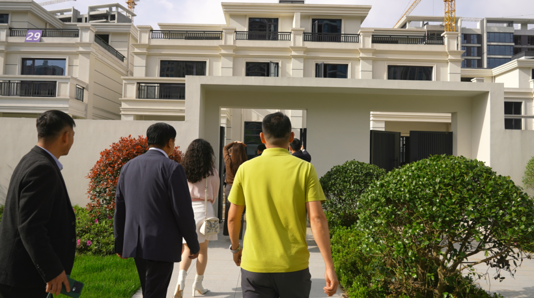 赏景过后,考察团前往别墅产品实地品鉴,了解院落空间格局、别墅景观设计与居住尺度,对墅区奢阔格局、匠心选材与整体产品定位连连称赞。