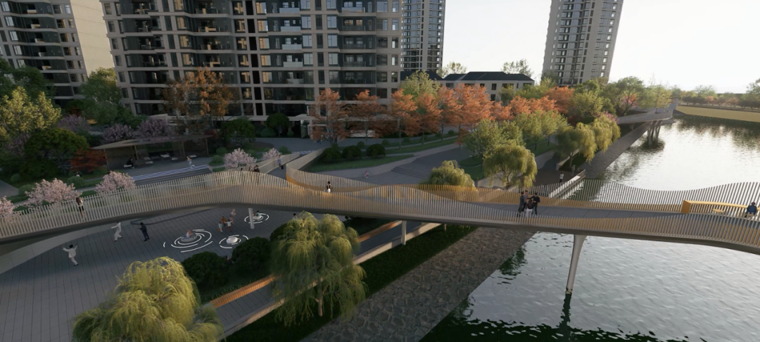 而社区内部,超航置业更是斥资数千万,对东港、幸福港两条天然河道进行全方位改造:截流防护、河床清淤、河道拓宽、河床硬化,让昔日普通河道变身两条1000 米滨水景观带;更打造 3 座极具艺术性的景观桥、景观休闲水廊,搭配10 万㎡园林景观,一步一景间,仿佛把家安在了度假公园里。