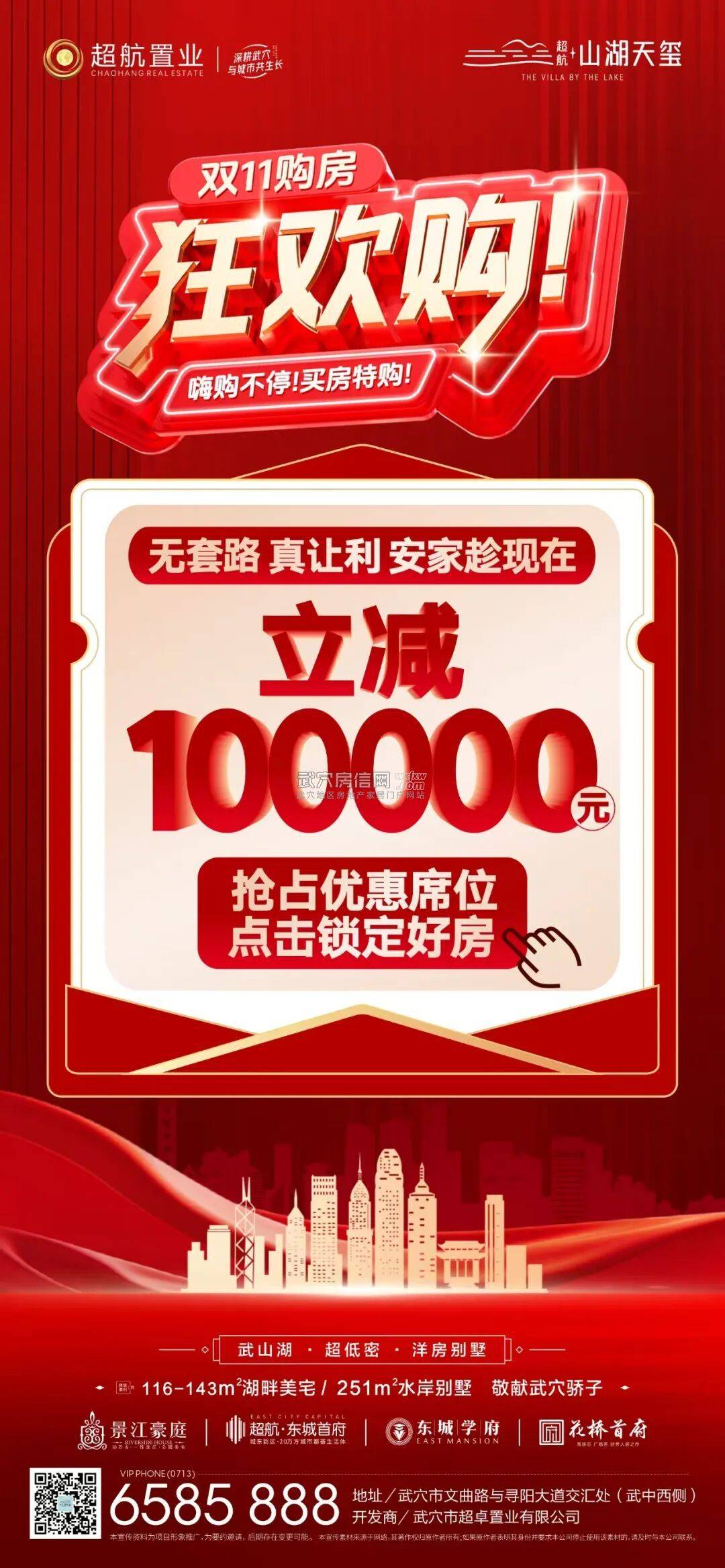 比起电商平台复杂的满减公式、凑单套路,山湖天玺的双 11 购房福利,简单直接却足够重磅:购房立减 100000 元!