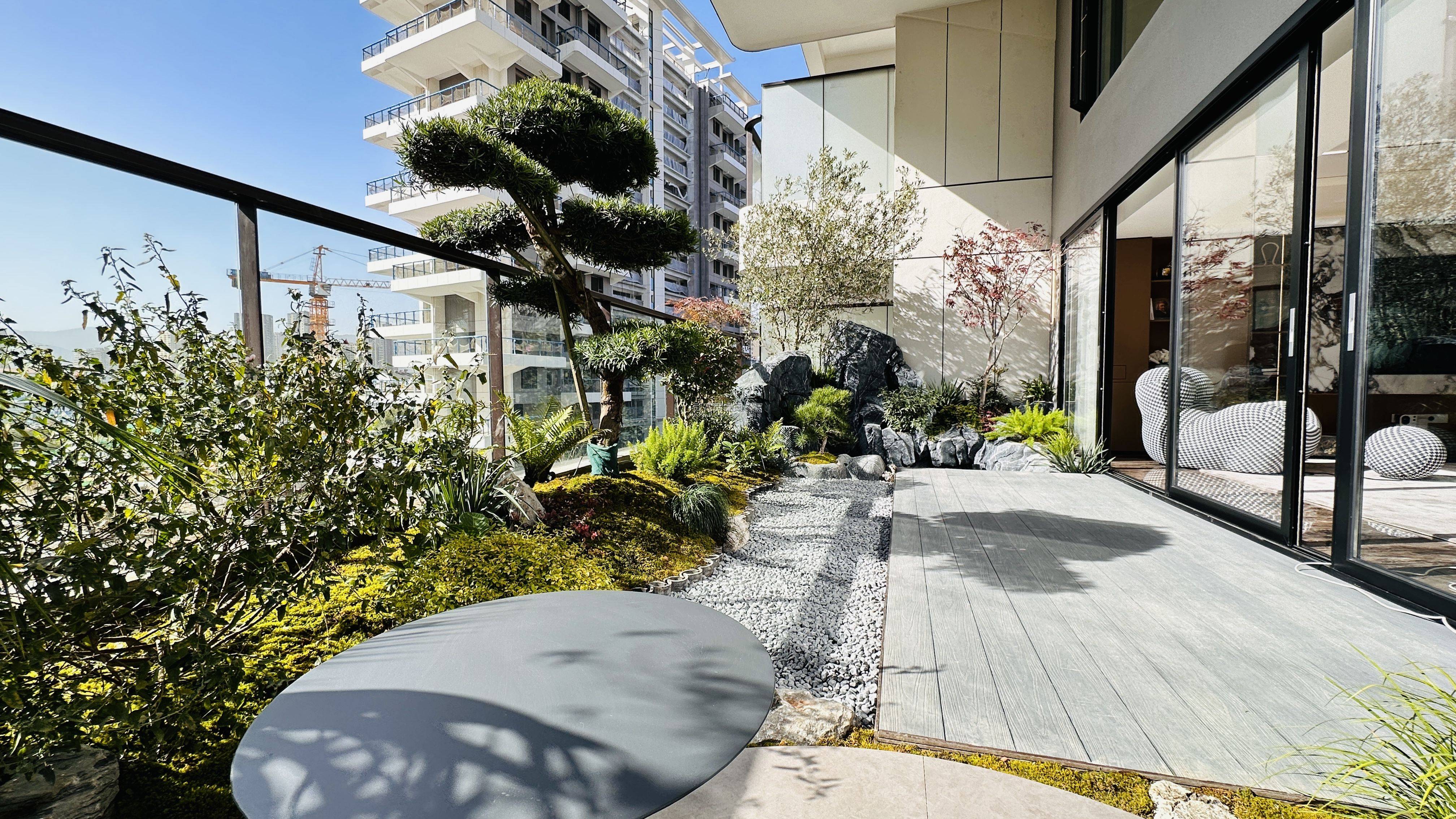 令人惊叹的三花园配置,演绎出不同的生活场景:入户花园是归家礼序;北向约13.8m²花园可作为私家菜园,满足四季的健康蔬果需求;而最引人注目的南向约41m²、6米挑空的空中花园,则是将自然彻底融入生活的舞台。