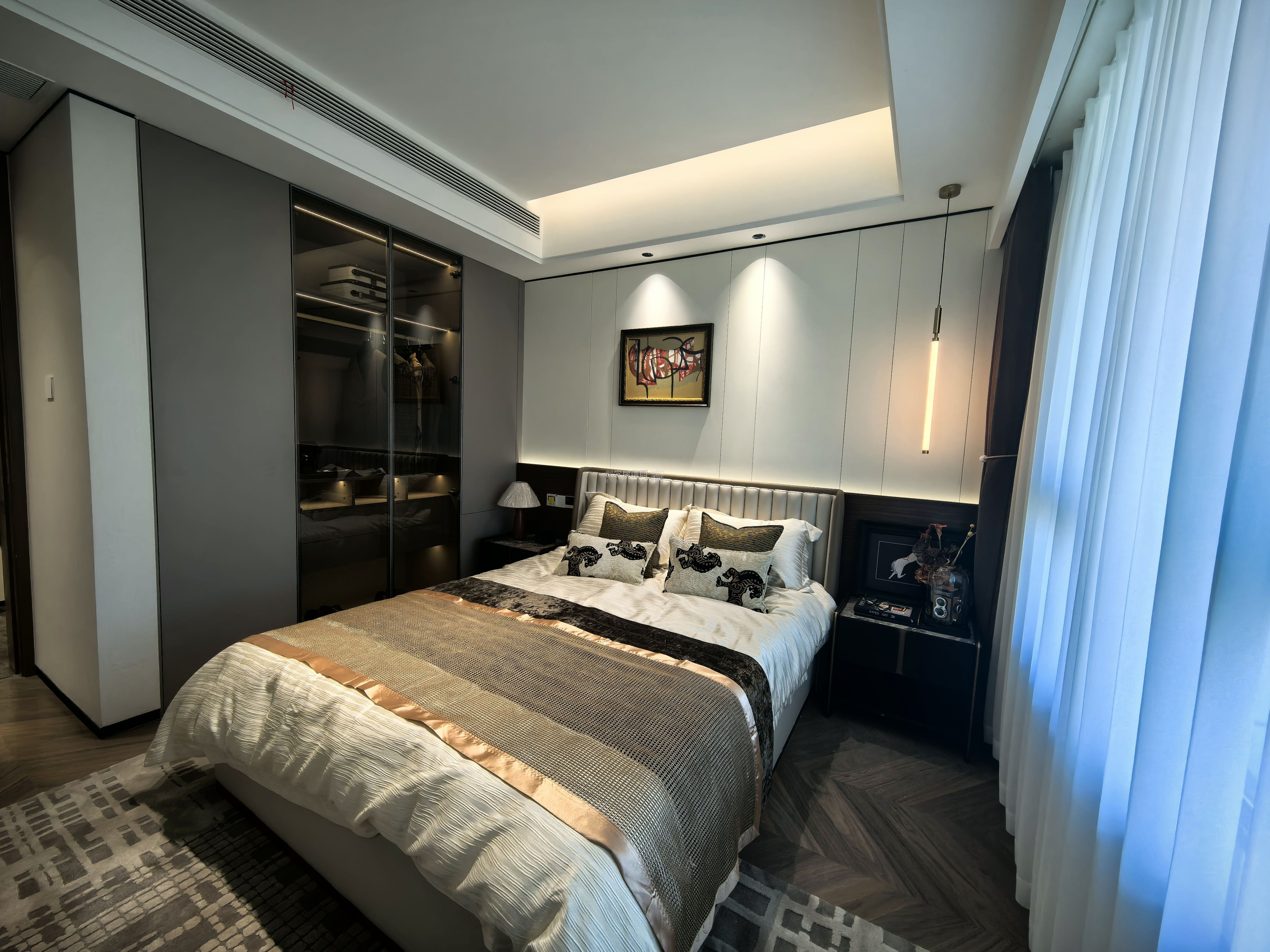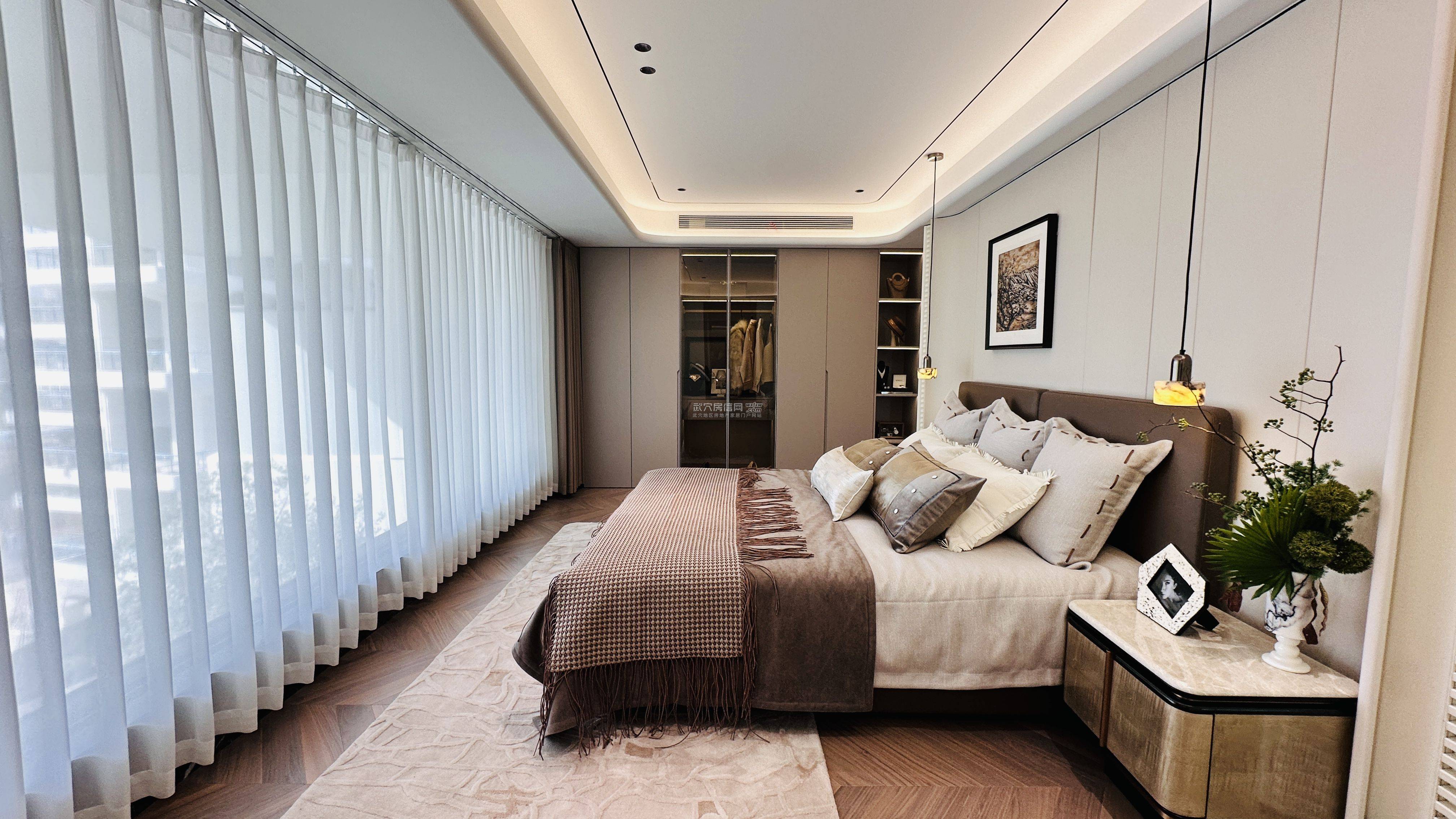 阔景主卧套房:主卧空间尺度奢阔,自带独立卫浴系统,保障了主人的私密与尊崇。推窗即见庭院景致,营造出媲美高端酒店的休憩氛围,足以安放身心与梦想。