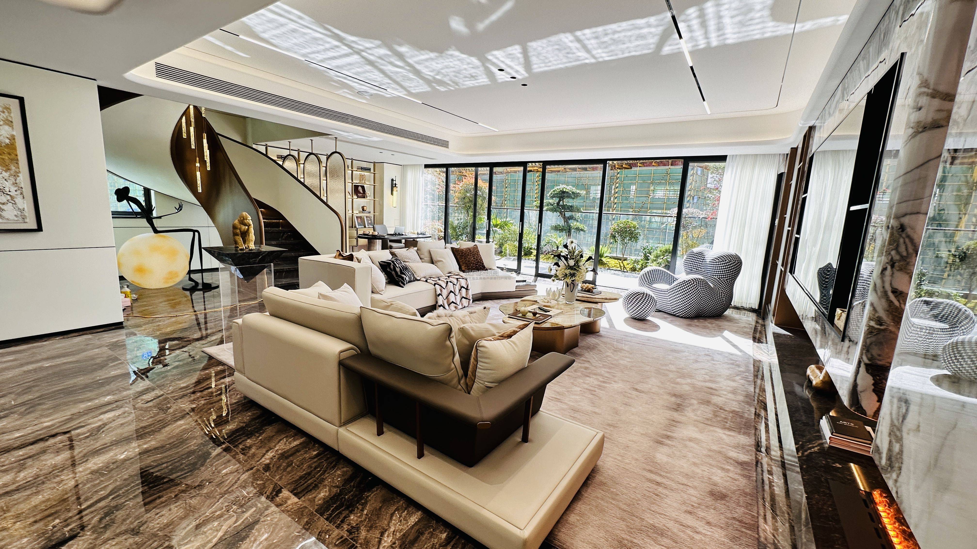 横向约11.4米、纵向约9.1米的纵横大尺度宽厅,打破空间界限。餐客厅与南向花园共同构建约113m²的阔绰社交会客空间,足以容纳超20人的大家庭聚餐和朋友聚会派对,让每一次欢聚都从容不迫。