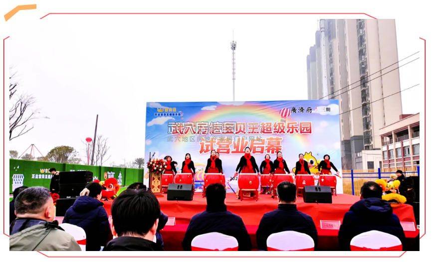 在万达宝贝王集团副总经理姚晓民的陪同下,金港集团总经理郭峰带领各位领导嘉宾实地参观了乐园设施。试营业启幕表演精彩纷呈,舞狮点睛一笔唤醒了新春的朝气,彩炮齐鸣响彻城西上空。现场人潮涌动,不仅是开园,更像是武穴家庭的一次聚会。