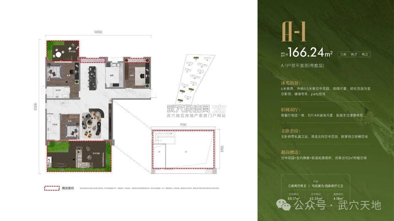 真四代: 得房率高达166%! 以武穴天地建面约169㎡的户型为例,实得约276㎡,赠送约107㎡。这意味着什么?你花一套房子的钱,得到的是近两套房的使用面积 。