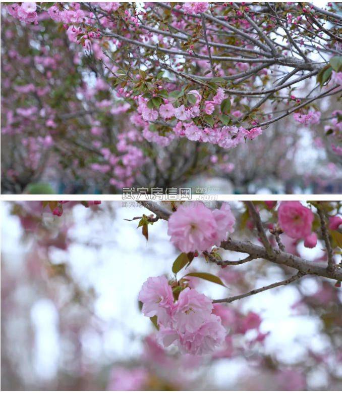 粉白花瓣层层叠叠、簇拥枝头,如云似霞;漫漫花香随风飘溢,徐徐散开,漫步其间,连呼吸都变得清甜。